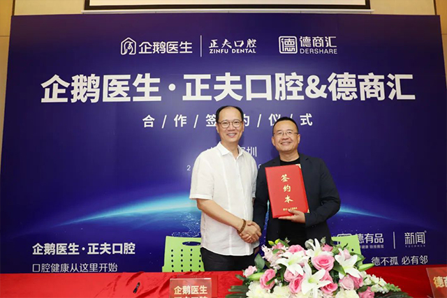 2020年6月5日,企鹅医生·正夫口腔&德商汇战略合作签约仪式在中洲控股中心圆满落幕。企鹅医生·正夫口腔董事长杨瑞锋先生、德商汇总会长王锡钧先生、企鹅医生·正夫口腔运营副总张哲人先生、企鹅医生·正夫口腔医疗副总张运发先生、企鹅医生·正夫口腔正夫商学院秘书长国筱薇女士、德商汇生活电商执行总裁黄治先生、东方美晨副总裁吴虹亮女士、德烨酒业董事长王叶女士等嘉宾出席了本次签约仪式。