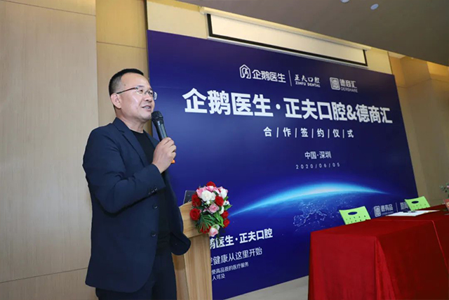 企鹅医生·正夫口腔董事长杨瑞锋先生在开场致辞中说道,“本次企鹅医生·正夫口腔与德商汇的深度融合,将给更多受众服务,同时相互赋能壮大,将正夫口腔的势能潜力激发。”
