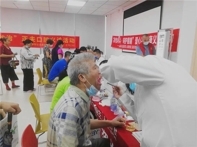 义诊期间,社区的现(退)役军人及其家属们都自觉排队让医生进行基础健康项目检查和牙齿健康检查。一些特别关注自身口腔问题的社区人员还提出了不少牙齿的疑问,正夫口腔的医生们也都耐心地进行了解答和指导。