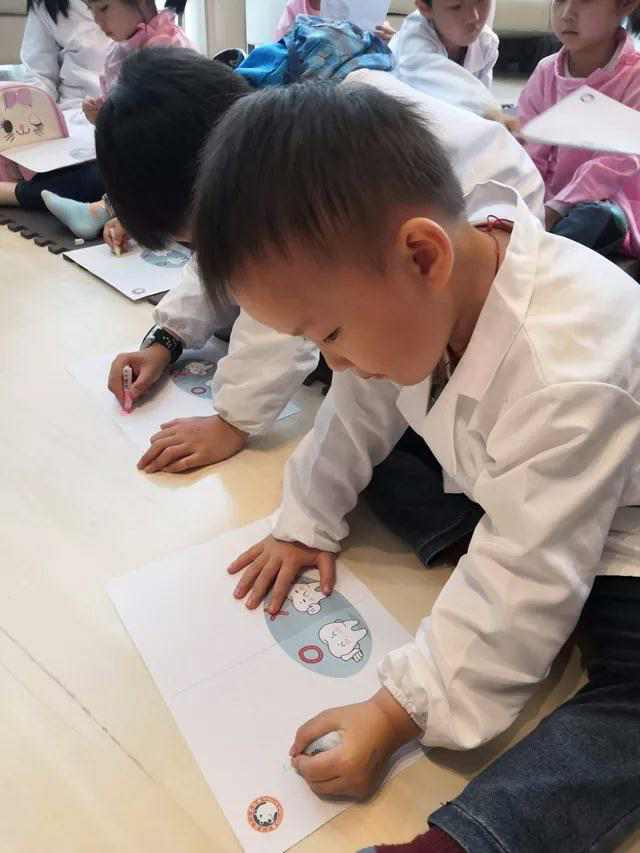 讲完了儿童口腔保健知识后,就给小朋友们发放了卡片,让小朋友发挥自己的想象力,把对牙齿有益与有害的食物画出来,看小朋友们画画的样子真的萌呆了。