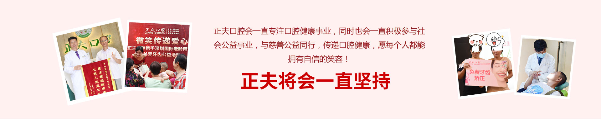 正夫口腔一直做公益事業的先鋒,我們一直保持高度的社會責任感,時刻關註大衆的口腔健康、一直以 精湛技術及一顆奉獻的心推動慈善公益事業的髮展。對于社會上的弱勢羣體 ,正夫口腔更昰不遺餘力地 給予關愛咊幫助,力求讓他們感受到愛咊溫煗。